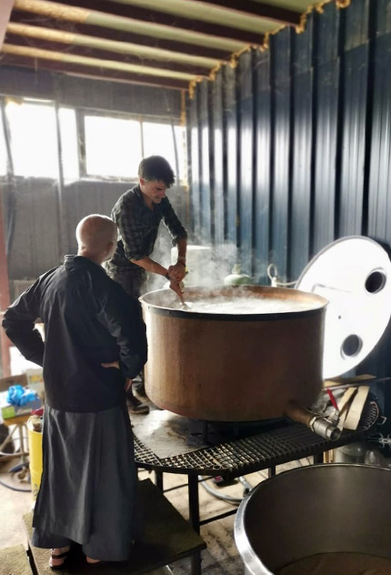 Émerveillés par les fleurs, les fruits et légumes du jardin, la sérénité et le calme de la nature que nous goutons dans le parc si bien entretenu jusqu’à aujourd’hui par les bénévoles du sanctuaire, et parce que les manuscrits d’Estelle Faguette font état de sa demande de boire un peu de bière après sa guérison miraculeuse, germait depuis quelques années l’idée de faire brasser par des artisans de la région « la bière du sanctuaire ».
